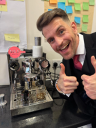 We’ve invested in a swanky new coffee machine, and it turns out two of our team are trained baristas!
